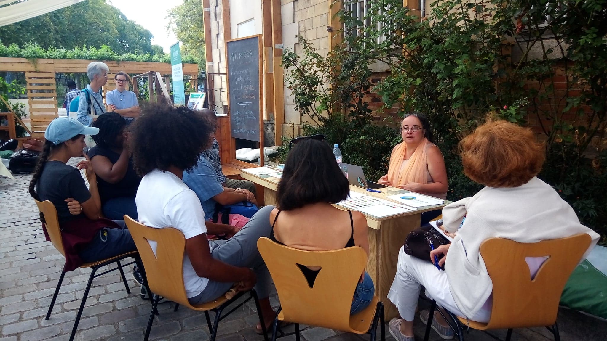 La Terrasse des Canaux était constituée de matériaux issus du réemploi et de végétaux comestibles ! Elle a été imaginée par l’architecte Myrtille Fakhreddine et le jardinier urbain Cédric Derouin autour du projet Edibulles.