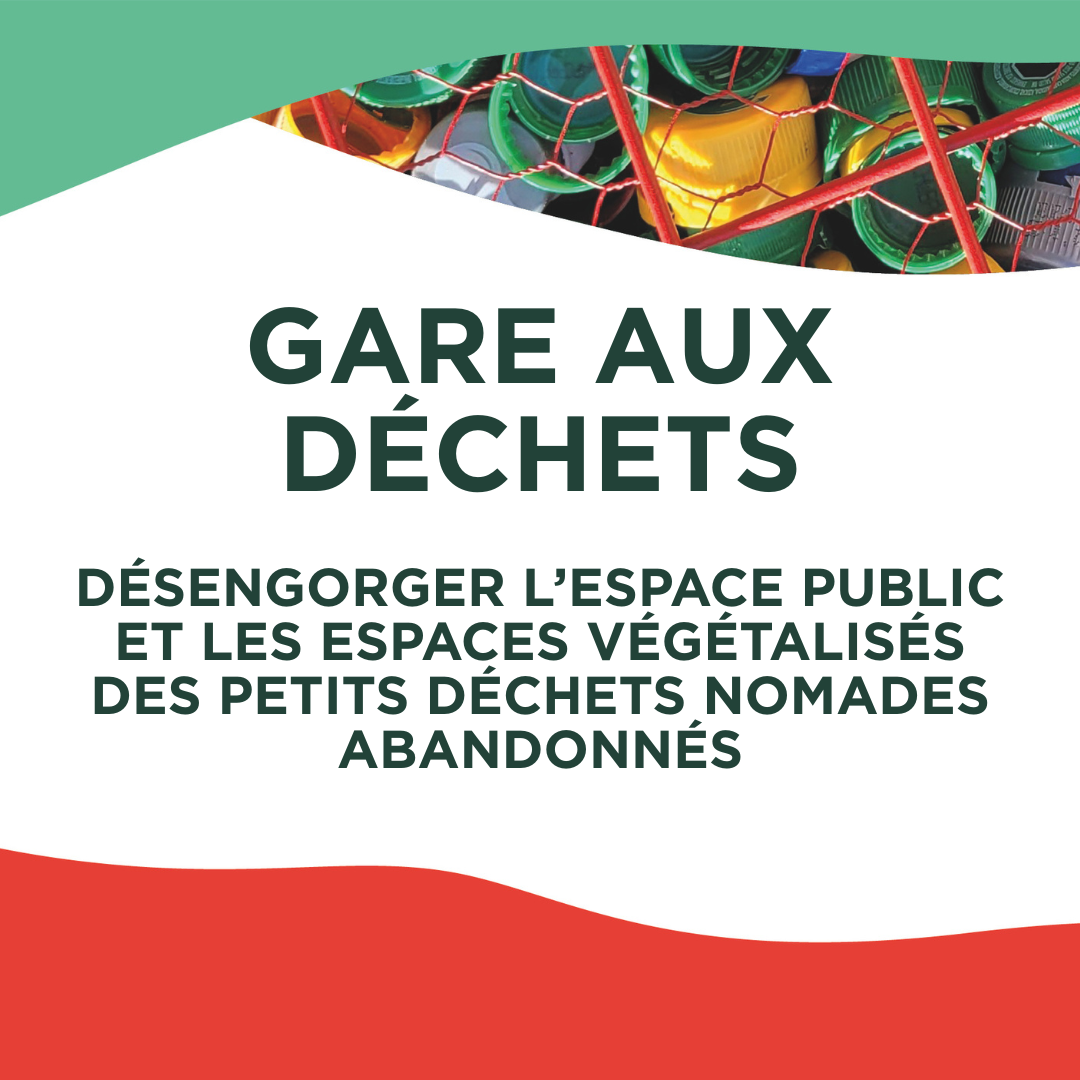 Gare aux déchets est un parcours incitatif joyeux pour réduire les déchets nomades abandonnés par le biais de 2 types d’intervention : intervention éphémère au sol par des streets artists et des actions de sensibilisation sur le terrain en partenariat avec les associations locales.